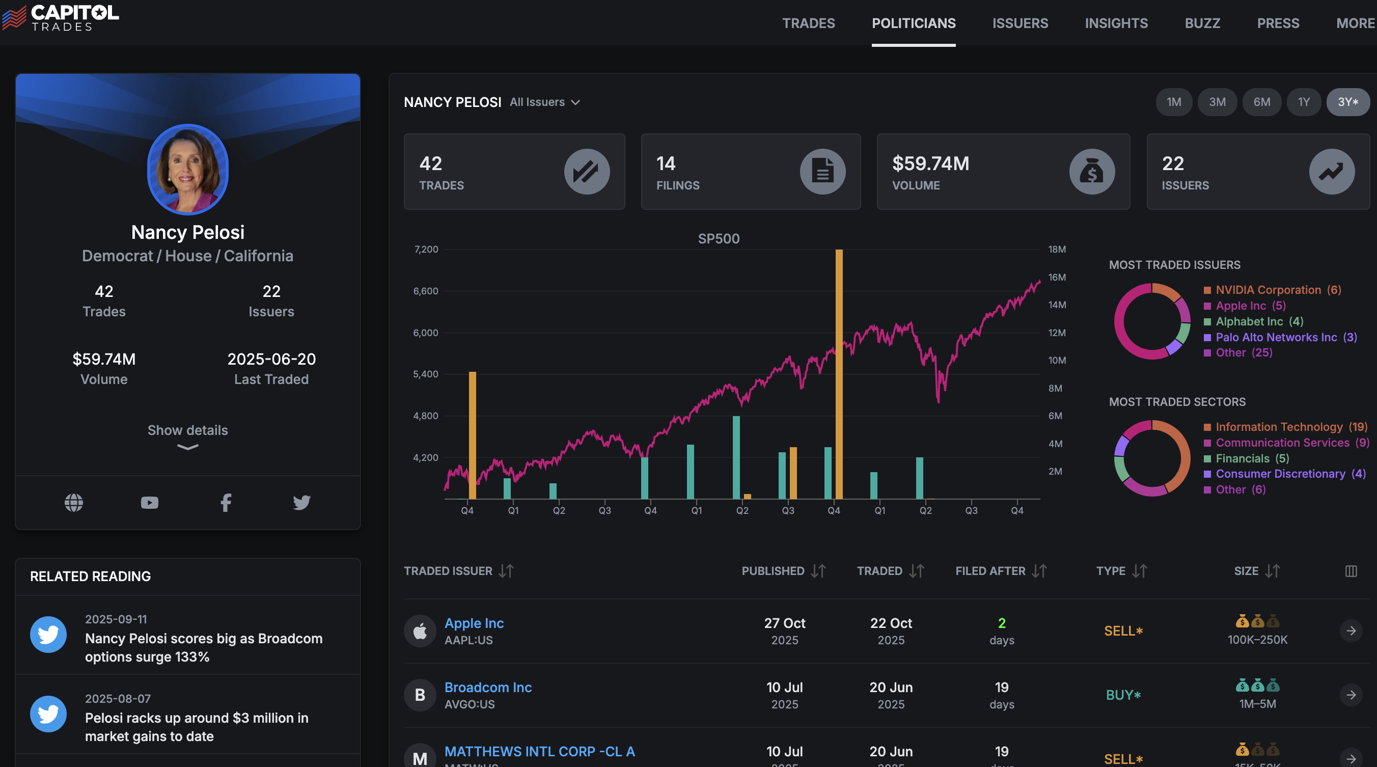 根据UnusualWhales的数据,佩洛西家族的投资组合在2020-2022年期间年化收益率达到65%,远超同期标普500指数的26%。